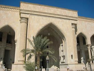 At the conclusion of our meeting we all donned our PPE (personal protection equipment) and made our way via a secure convoy of armored vehicles to Camp Victory and Saddam Hussein’s Al-Faw Palace. The beguiling nature of the serenity that now shrouds the Palace was offset, here and there, by what one could still see as the vivid reminders of the military action that had played out there not too long ago. One guard tower showed the signs of having been thoroughly perforated by an assortment of military weapon systems.